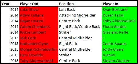 Last season’s replacements performed admirably, but replacing Clyne, Schneiderlin and Alderweireld is much more difficult. While Soares and Clasie looks like capable players, Steven Caulker has spent the last two seasons being relegated, which is never a good thing. Defending will be a massive problem for them, particularly when you consider the team’s lack of pace.